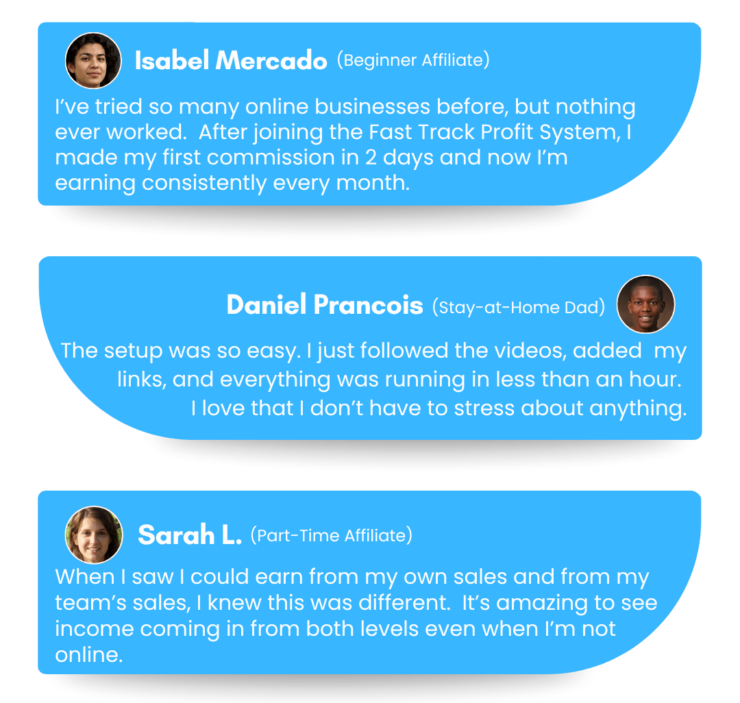 These are some everyday people who started exactly where you are and they’re now growing real online income with this simple system.